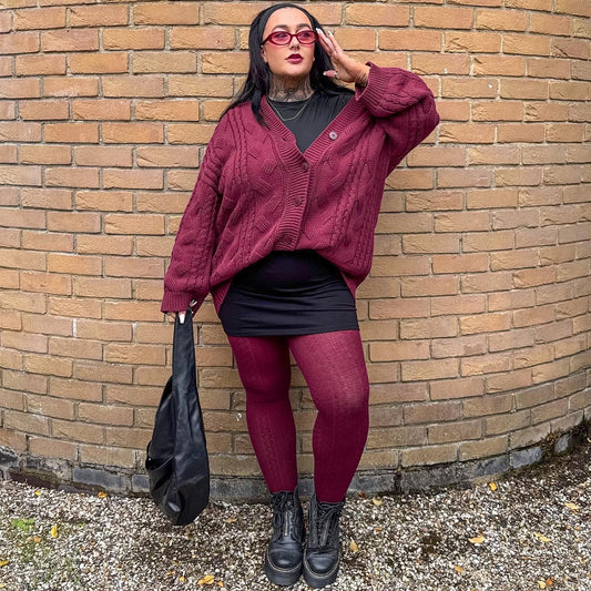 Grannies Cable Knit Wool Tights V2 - Cherry