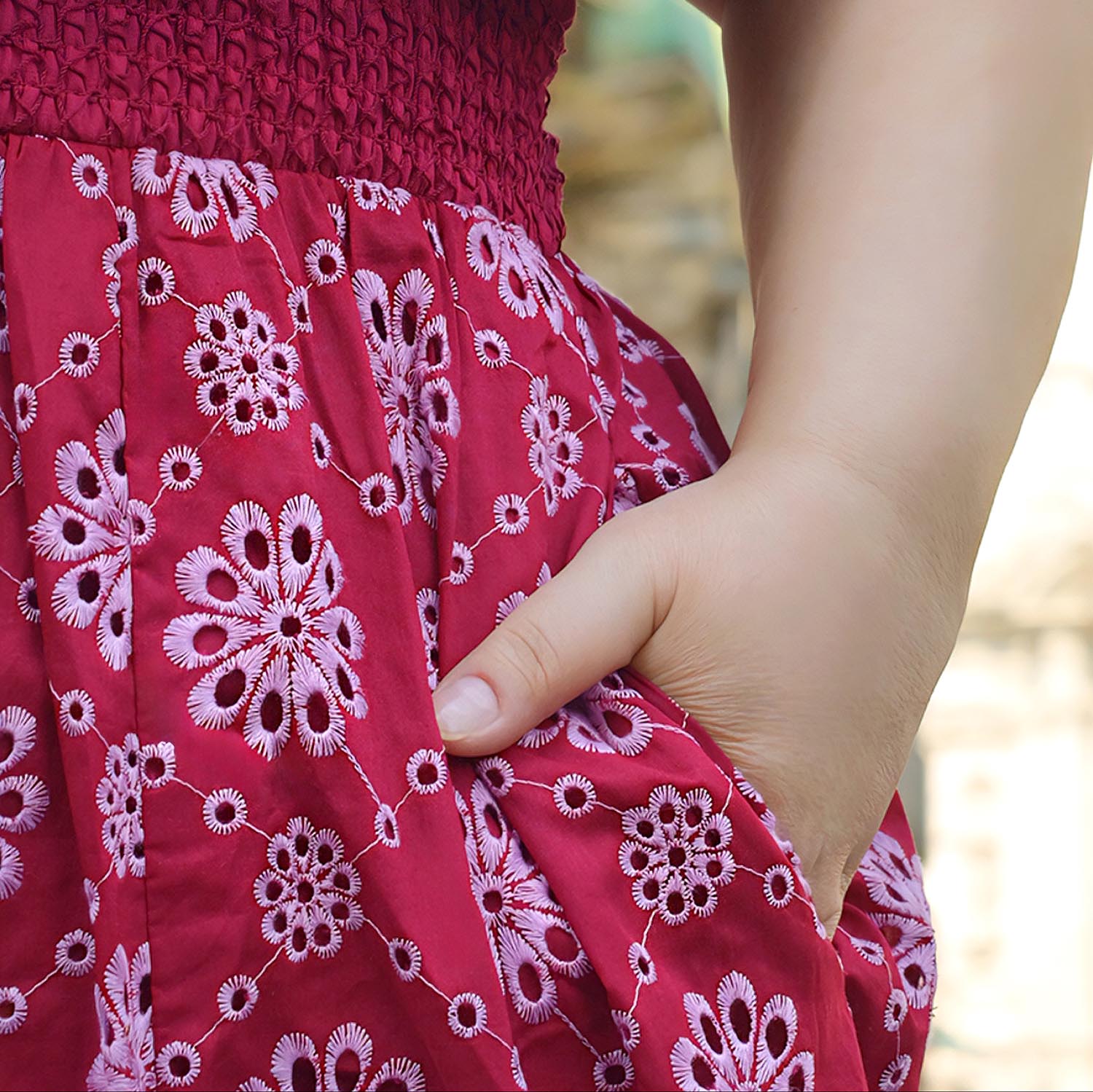 Broderie Anglaise Midi Dress - Blood Red