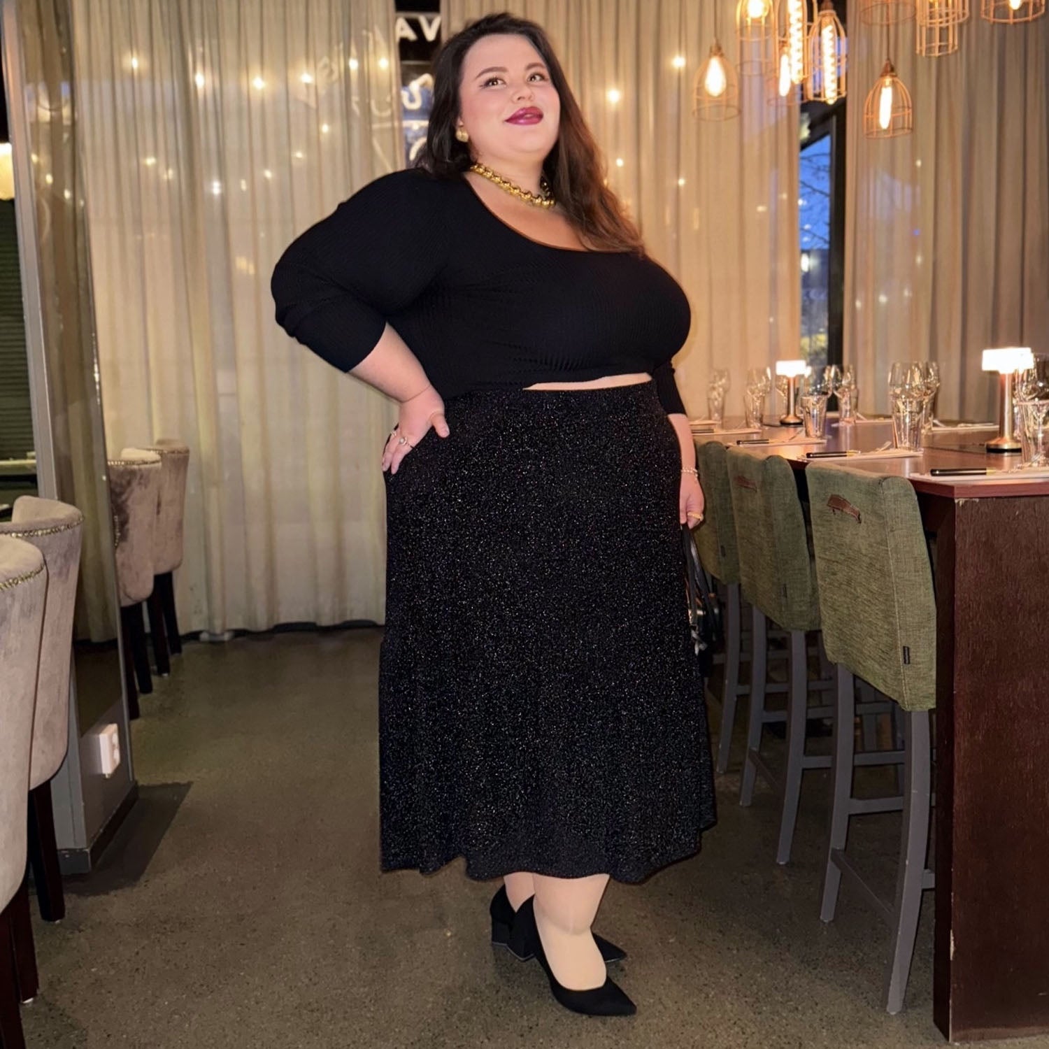 Lurex Tiered Midi Skirt - Black