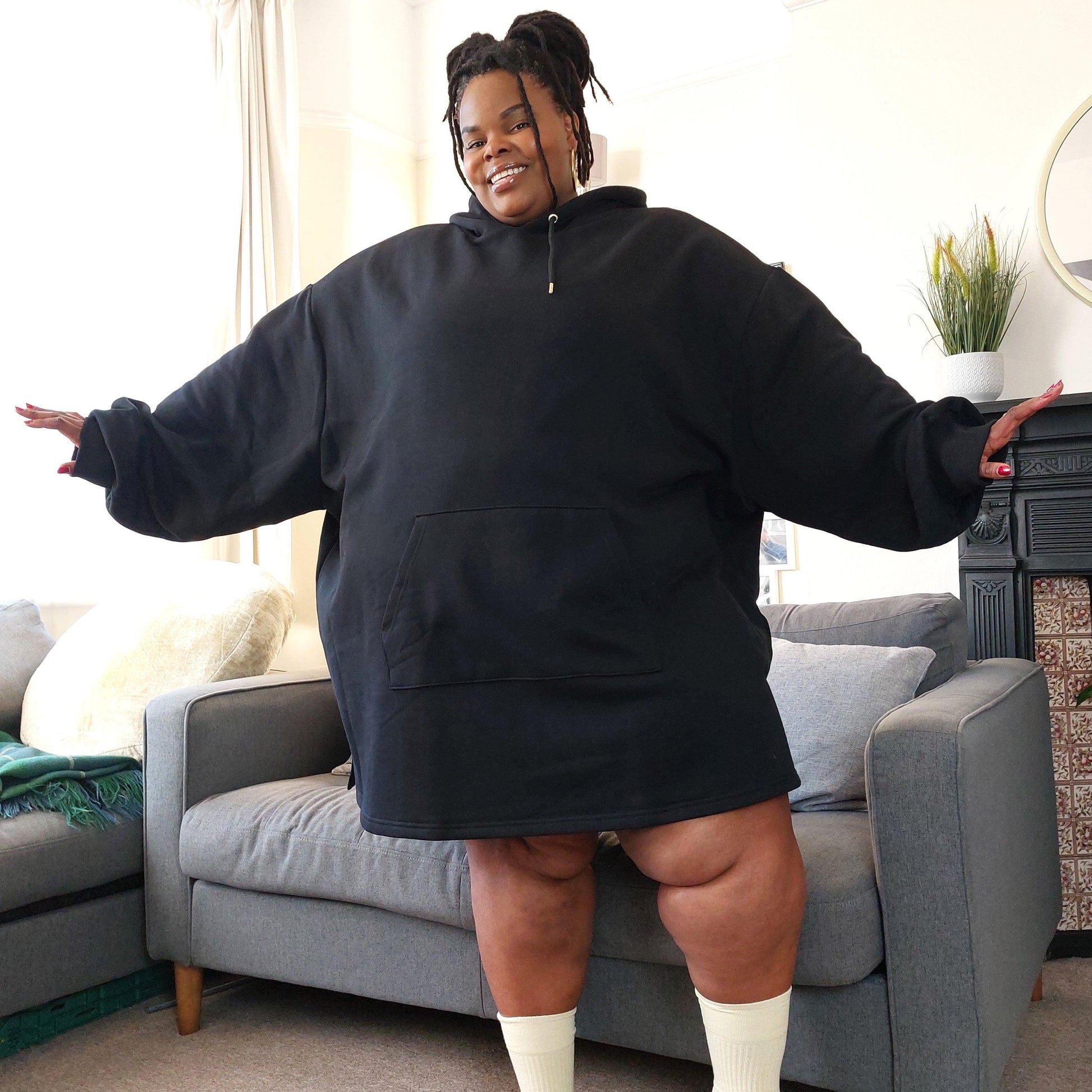 This jumper is the bomb! Sooo soft and stretchy and I love the bats and lightening. I am an F and 5ft tall (short?). Perfect length for me.