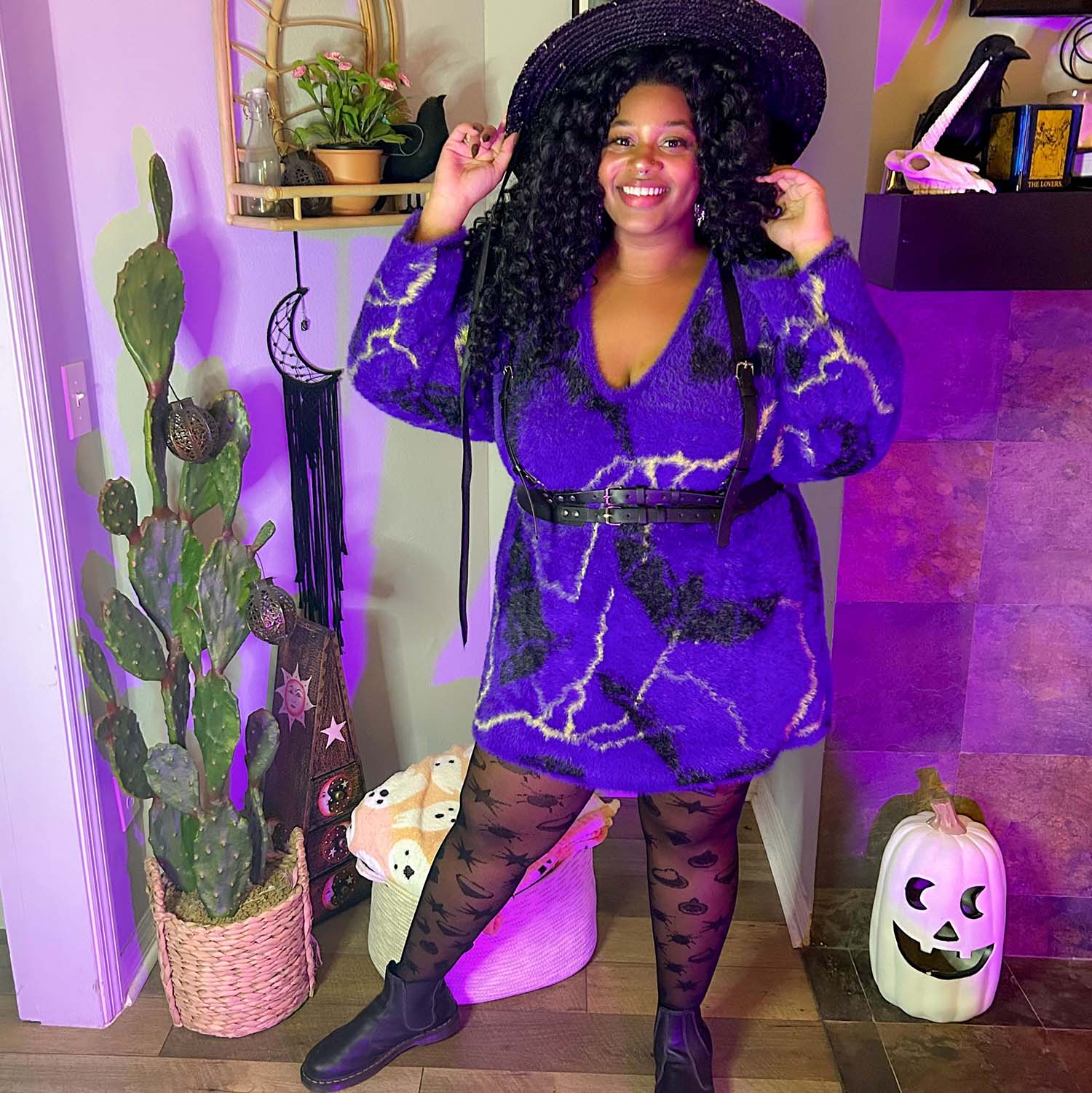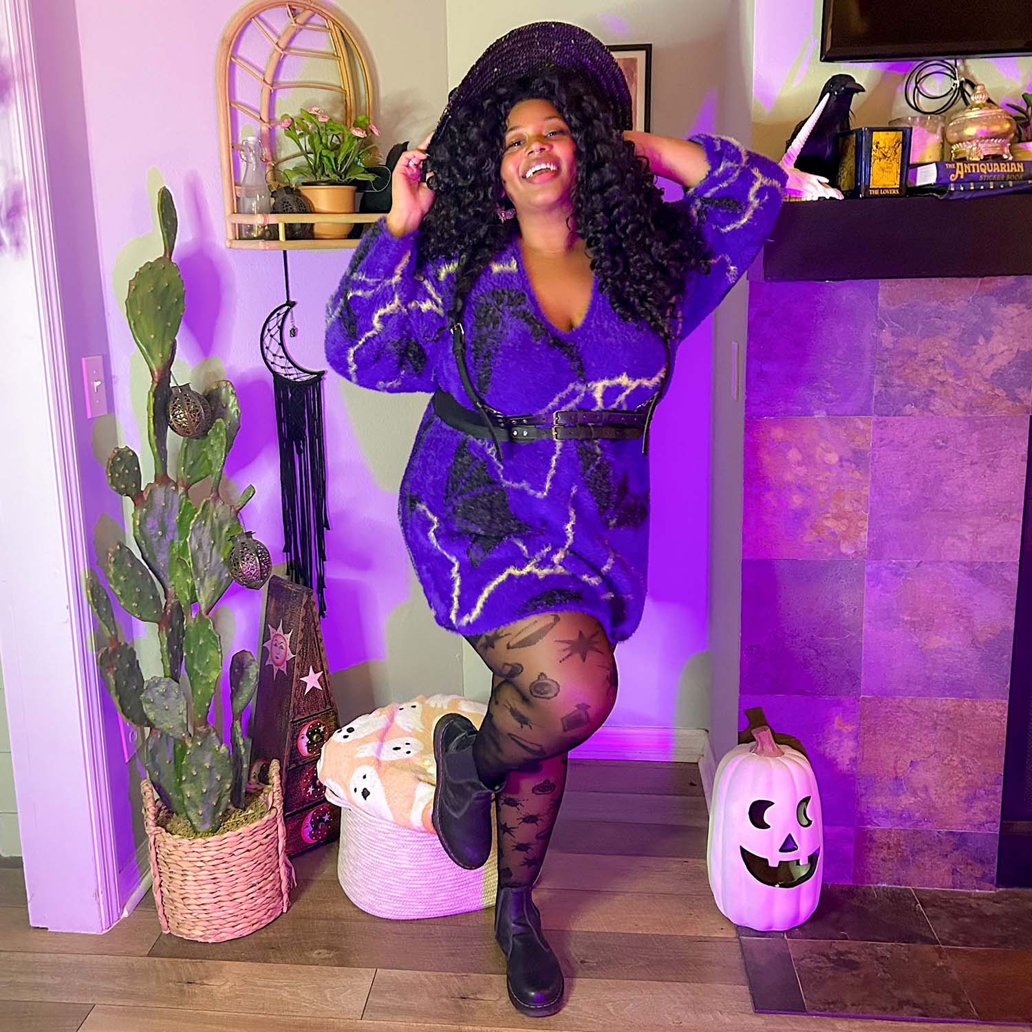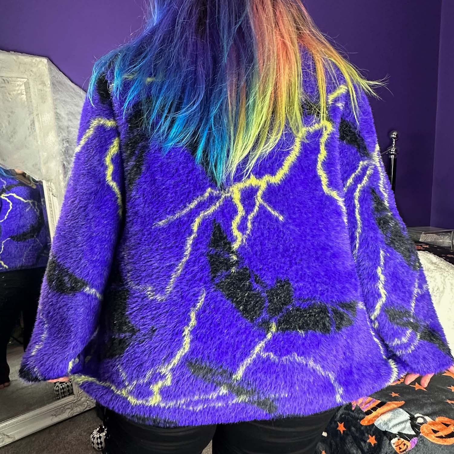 This jumper is the bomb! Sooo soft and stretchy and I love the bats and lightening. I am an F and 5ft tall (short?). Perfect length for me.